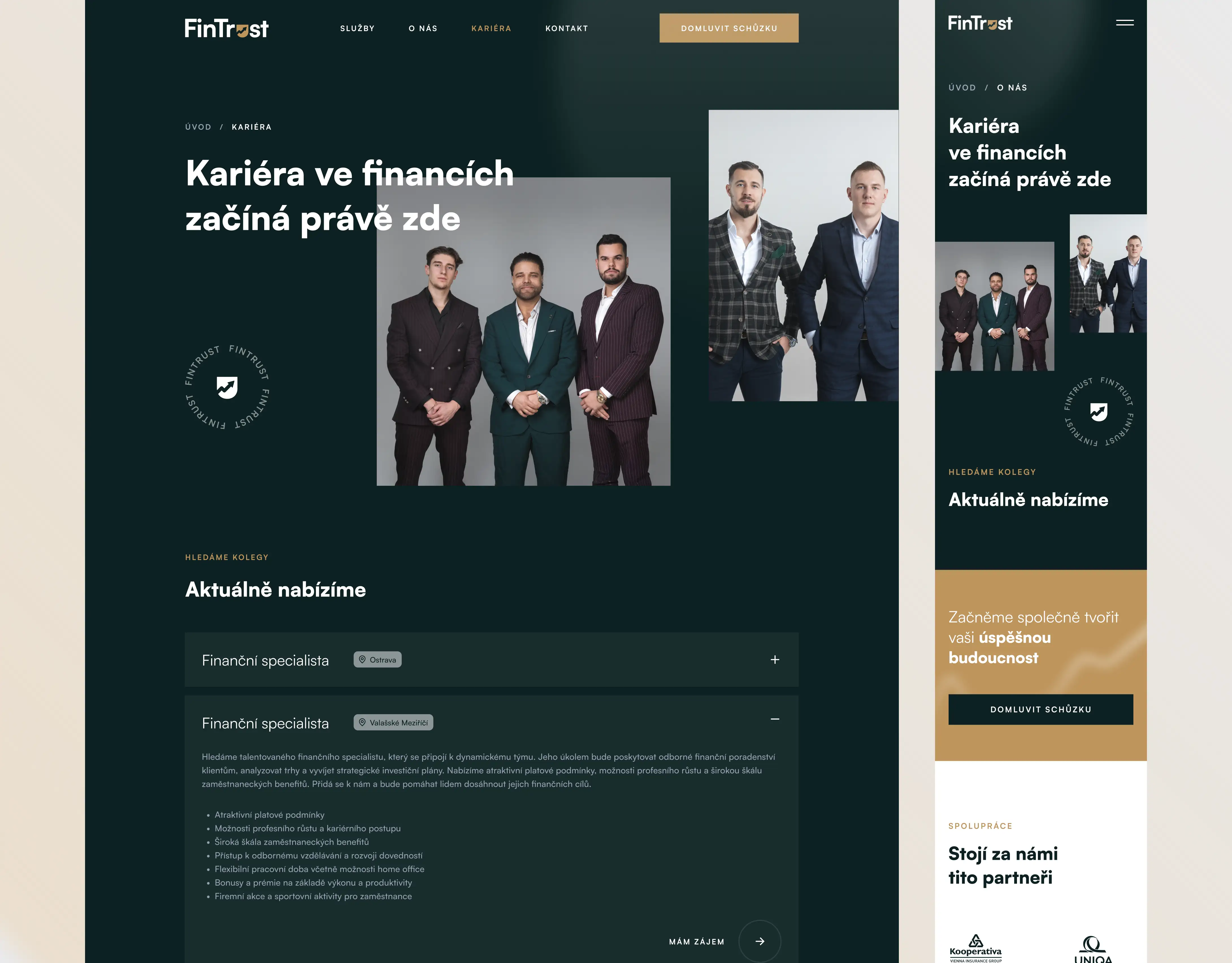 Pro FinTrust group jsme navrhli vizuální identitu a vytvořili moderní webové řešení, které reflektuje stabilitu, důvěru a profesionalitu finančního prostředí. Branding pracuje s elegantní barevností, čistou typografií a sebevědomým vizuálním stylem, který podporuje vnímání značky jako silného partnera pro dlouhodobé finanční poradenství.