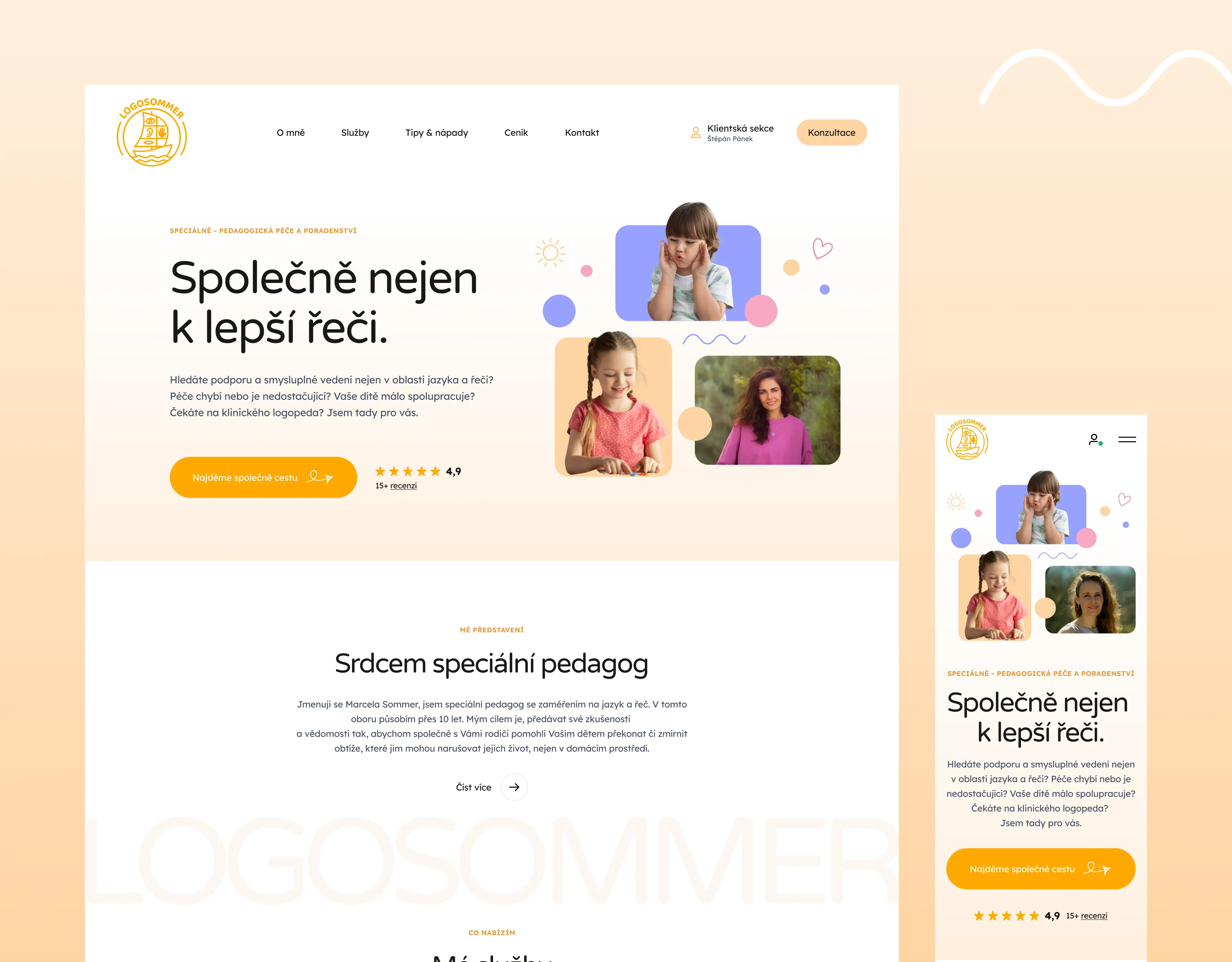 Pro Logosommer jsme vytvořili kompletní vizuální identitu a webové řešení, které reflektuje citlivý a lidský přístup k dětem i jejich rodičům. Cílem bylo navrhnout značku i web tak, aby působily přívětivě, hravě a zároveň profesionálně, a to bez zbytečné strohosti, která je v tomto oboru často překážkou.